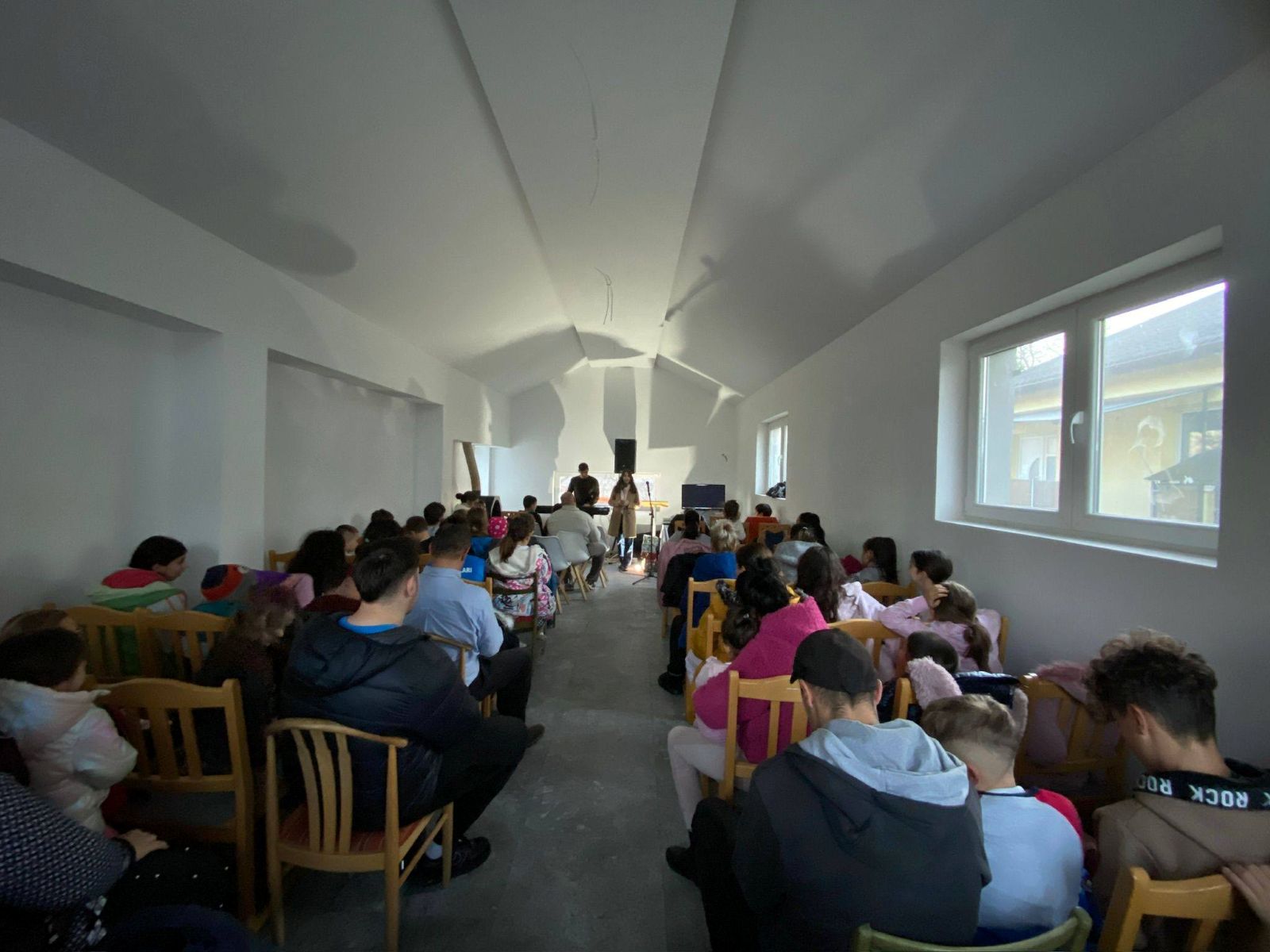 De această dată nu am invitat un grup de colindători, ci i-am provocat chiar pe copii să cânte — și am cântat cu toții. Seara a fost una interactivă, cu întrebări și răspunsuri despre nașterea Domnului Isus Hristos, despre realitatea acestui eveniment și rostul lui pentru omenire.
