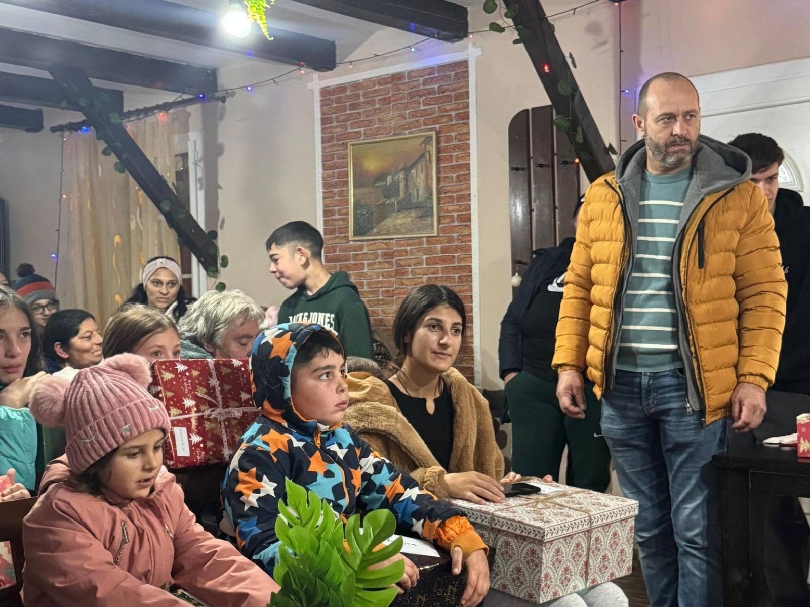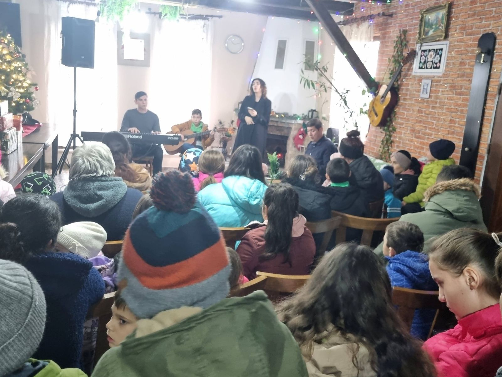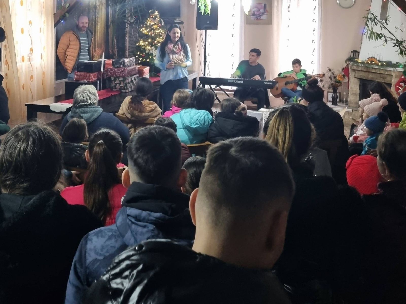 Dacă anul trecut, din lipsa unui spațiu adecvat, nu am reușit să creăm un cadru potrivit pentru colinde și pentru oferirea cadourilor copiilor, fiind nevoiți să le împărțim în stradă, anul acesta ne-am bucurat de bunăvoința gazdelor de la Cabana Rustic din Sâncel, care ne-au pus la dispoziție un spațiu primitor și decorat pentru această întâlnire specială.